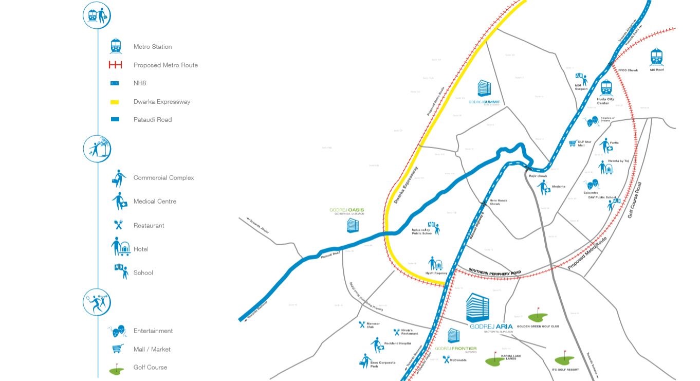 Godrej Aria is situated in one of the most prime locations in Gurgaon, Sector 79. The location of the project is such that it is easily accessible from all parts of the city. The project is in close proximity to major business hubs, hospitals, schools, and entertainment centers. The location also provides easy access to major highways and roads, making it easy to commute to different parts of the city.